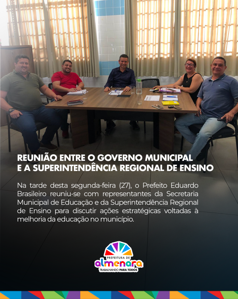 Na tarde desta segunda-feira (27), o Prefeito Eduardo Brasileiro reuniu-se com representantes da Secretaria Municipal de Educação e da Superintendência Regional de Ensino para discutir ações estratégicas voltadas à melhoria da educação no município. Durante o encontro, foram abordados temas como a qualidade do ensino, os desafios enfrentados pelas escolas da rede municipal, a capacitação de professores e a ampliação do acesso a recursos pedagógicos. O diálogo também reforçou a parceria entre o município e o estado para garantir uma educação mais inclusiva e eficiente. A reunião contou com a presença da Secretária Municipal de Educação, Leidimar Rocha Ruas, e…