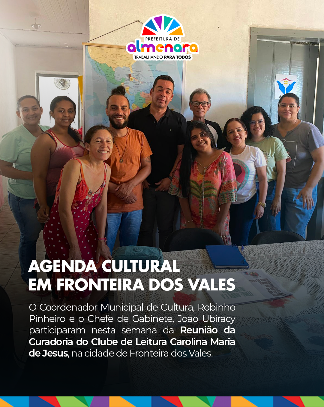 Nesta semana, o Coordenador Municipal de Cultura, Robinho Pinheiro e o Chefe de Gabinete, João Ubiracy, marcaram presença na Reunião da Curadoria do Clube de Leitura Carolina Maria de Jesus, realizada em Fronteira dos Vales. Um encontro que reforça o compromisso com a valorização da leitura e da cultura em nosso município e em toda a região. Prefeitura de Almenara – Governo Trabalhando para todos!