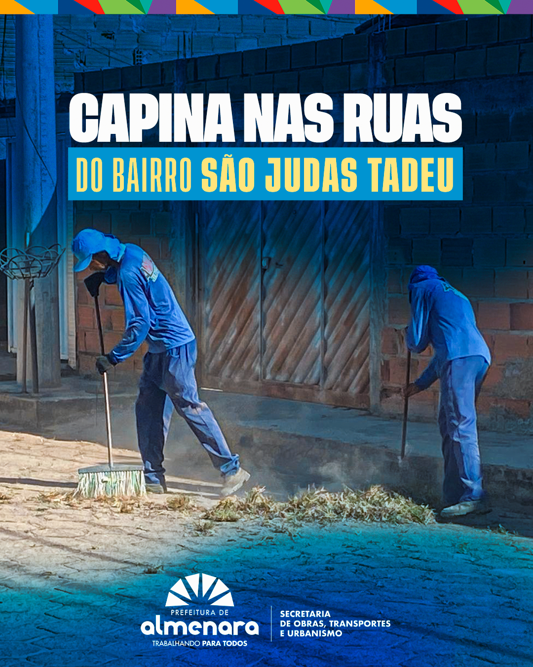 A Prefeitura de Almenara, por meio da Secretaria de Obras, Transportes e Urbanismo, segue intensificando os trabalhos de limpeza e manutenção em diversos pontos da cidade. Desta vez, a equipe de serviços urbanos realizou a capina e a retirada de resíduos nas ruas do Bairro São Judas Tadeu.