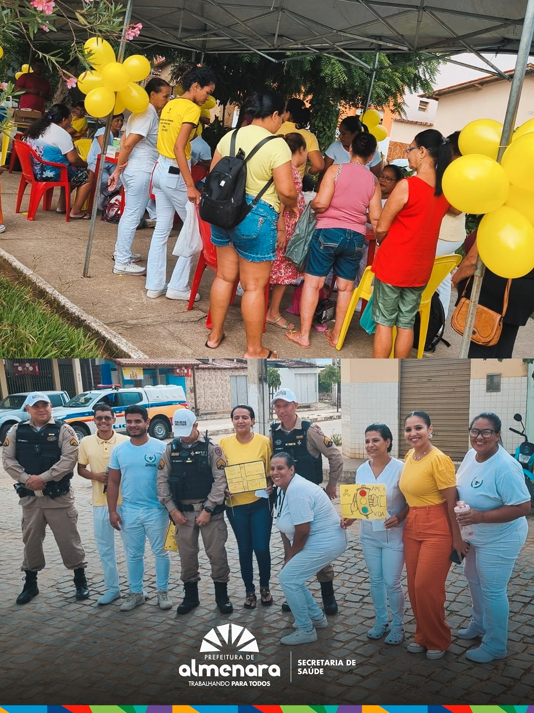 A Prefeitura de Almenara, por meio da Secretaria Municipal de Saúde, promoveu uma importante ação de conscientização na Praça São Francisco, em alusão ao Movimento Maio Amarelo, que tem como objetivo reforçar a importância da segurança, do respeito e da responsabilidade no trânsito.