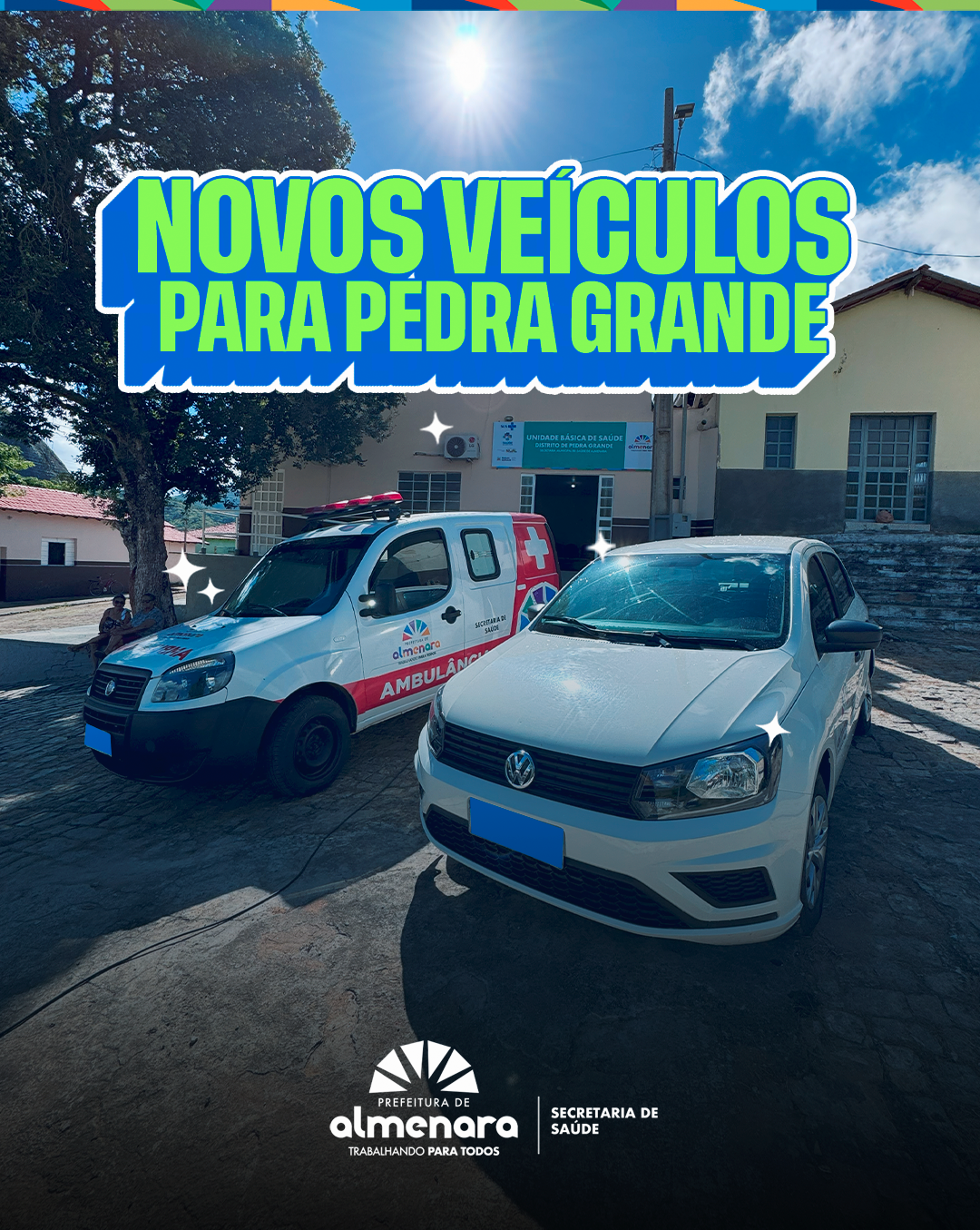 Além da entrega dos veículos, a UBS de Pedra Grande passou por uma reforma e também ganhou uma nova placa de identificação, com a identidade visual da nova gestão, reforçando o trabalho de reestruturação da saúde no município.