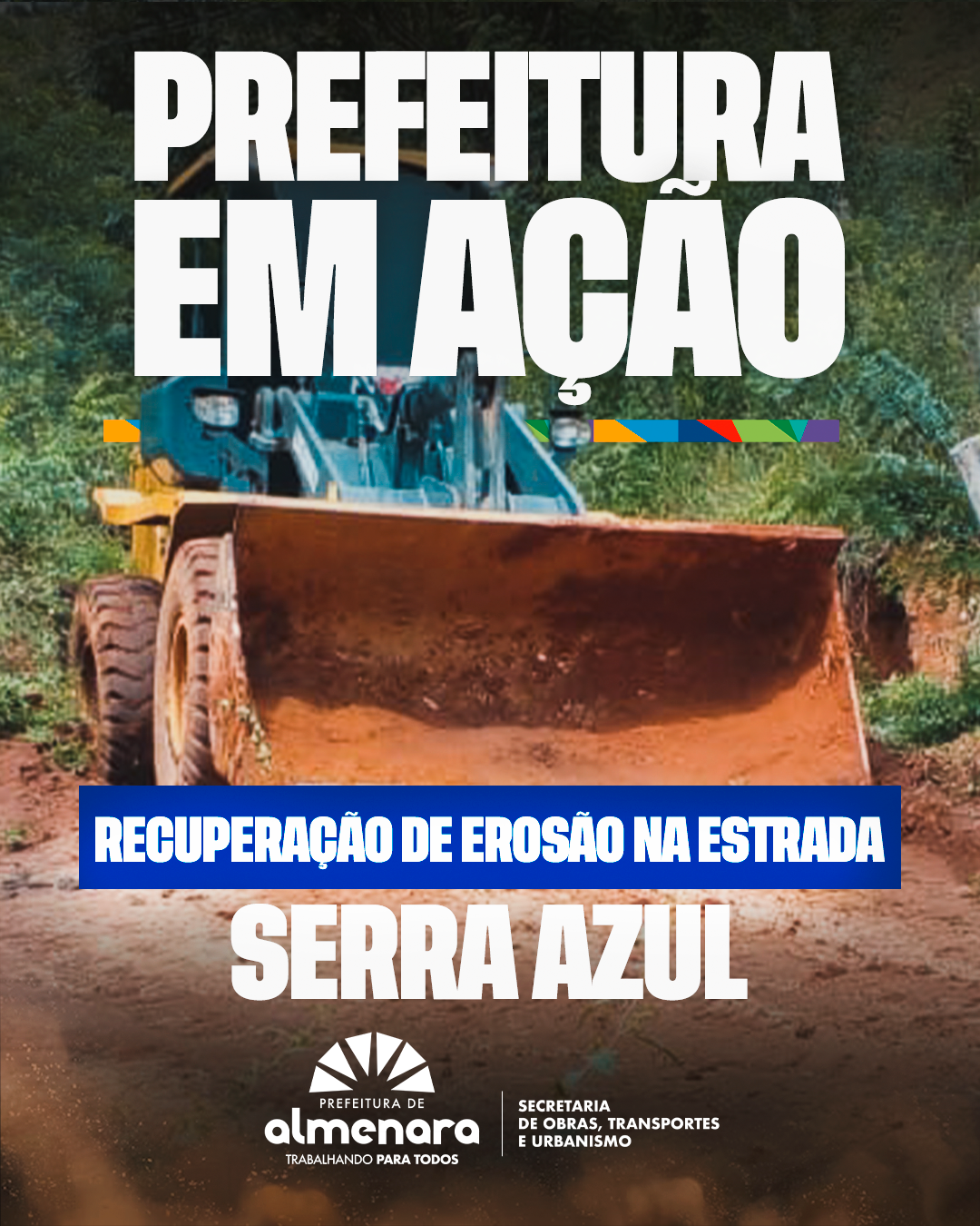 A Prefeitura de Almenara, por meio da Secretaria Municipal de Obras, Transporte e Urbanismo, está executando intervenções emergenciais nos pontos mais críticos da estrada que dá acesso à Serra Azul, região importante para o tráfego de moradores e atividades produtivas da zona rural.
