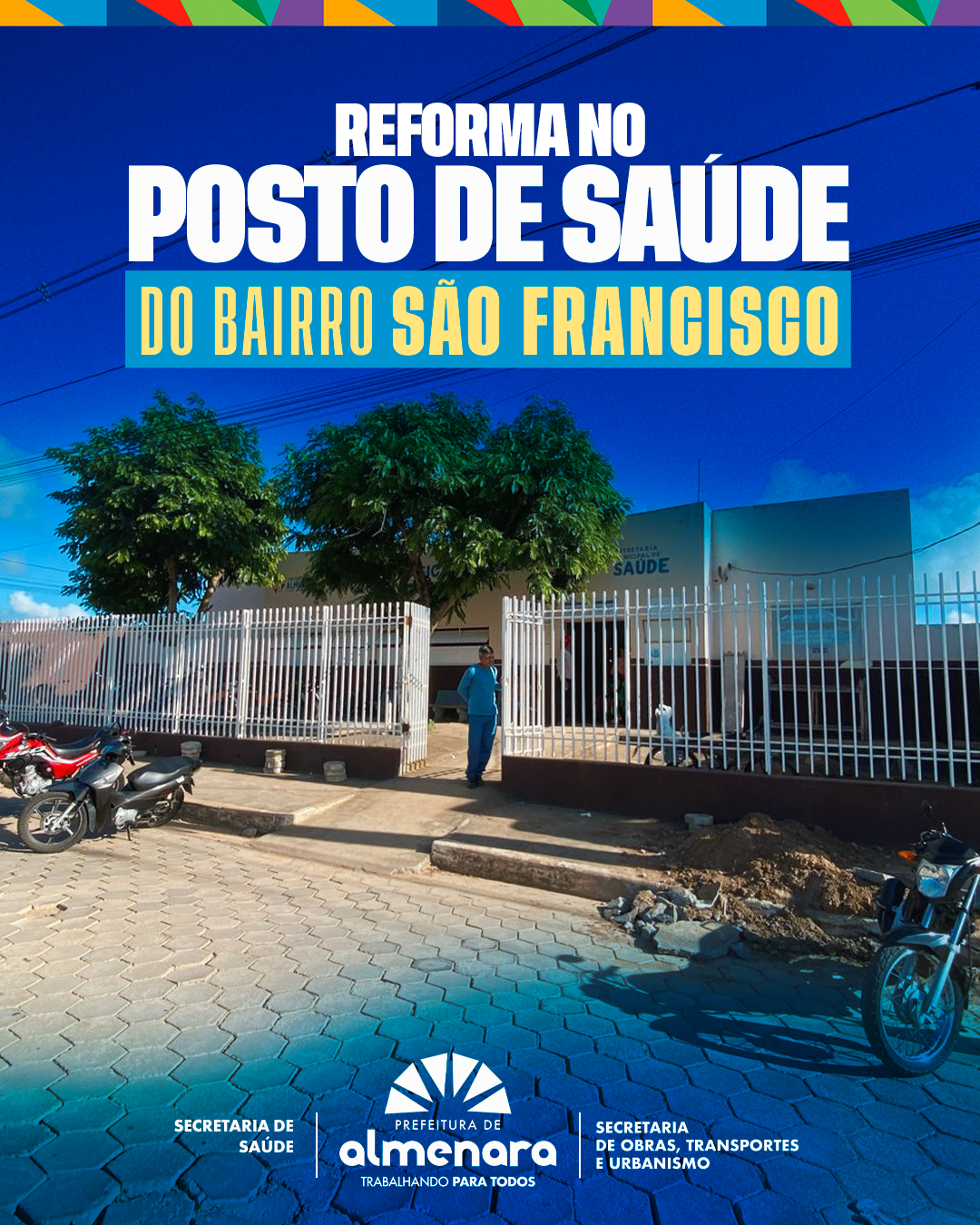 A Prefeitura Municipal, por meio da Secretaria de Obras, está executando a reforma do Posto de Saúde do São Francisco, garantindo mais conforto e estrutura adequada para a população e os profissionais da saúde.