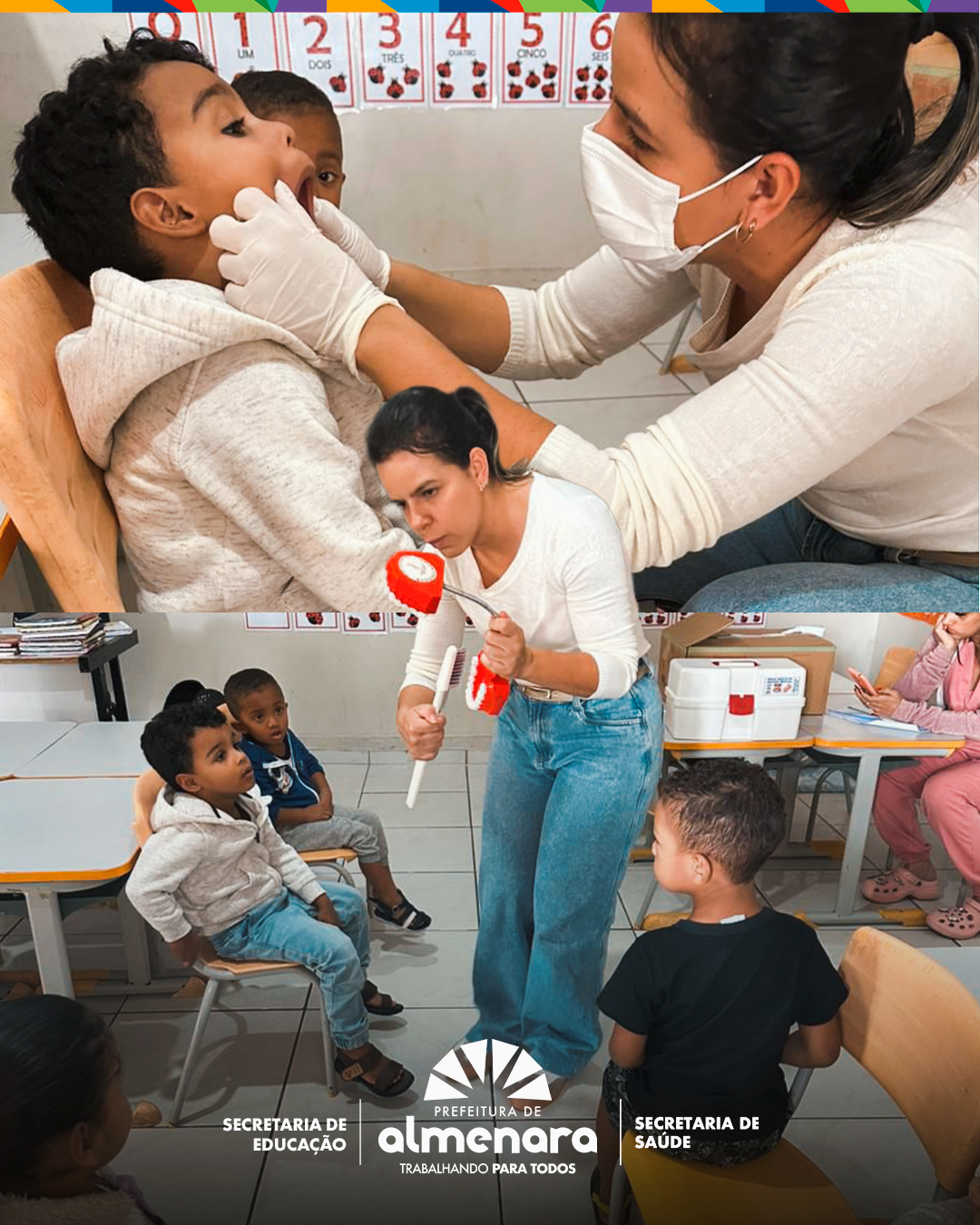 Em mais uma importante iniciativa do Programa Saúde na Escola (PSE), a Prefeitura de Almenara, por meio da Secretaria Municipal de Saúde, realizou uma ação educativa sobre saúde bucal nas escolas Edna Costa (turnos da manhã e tarde) e Extensão Cecyhelia Tupy.